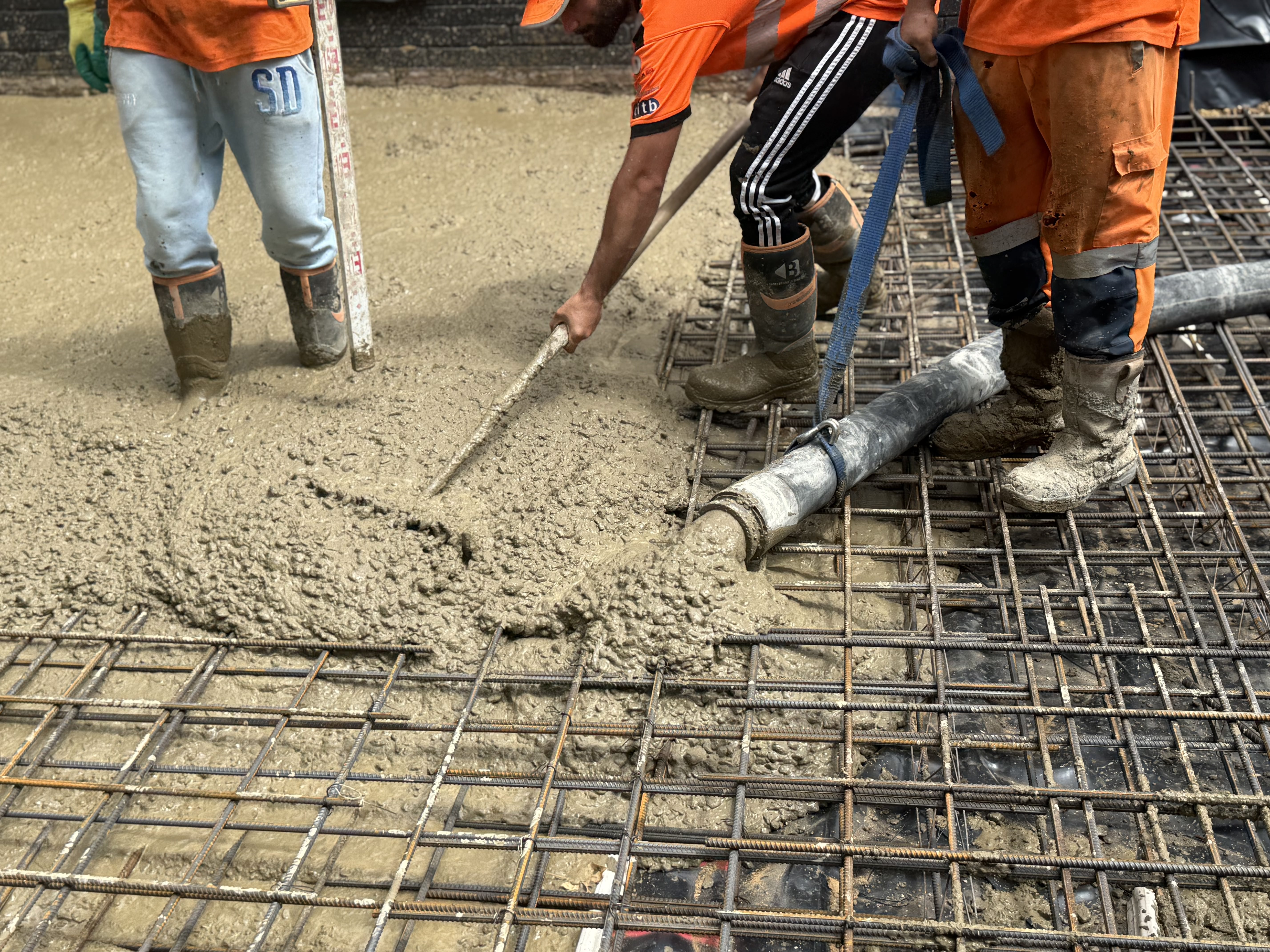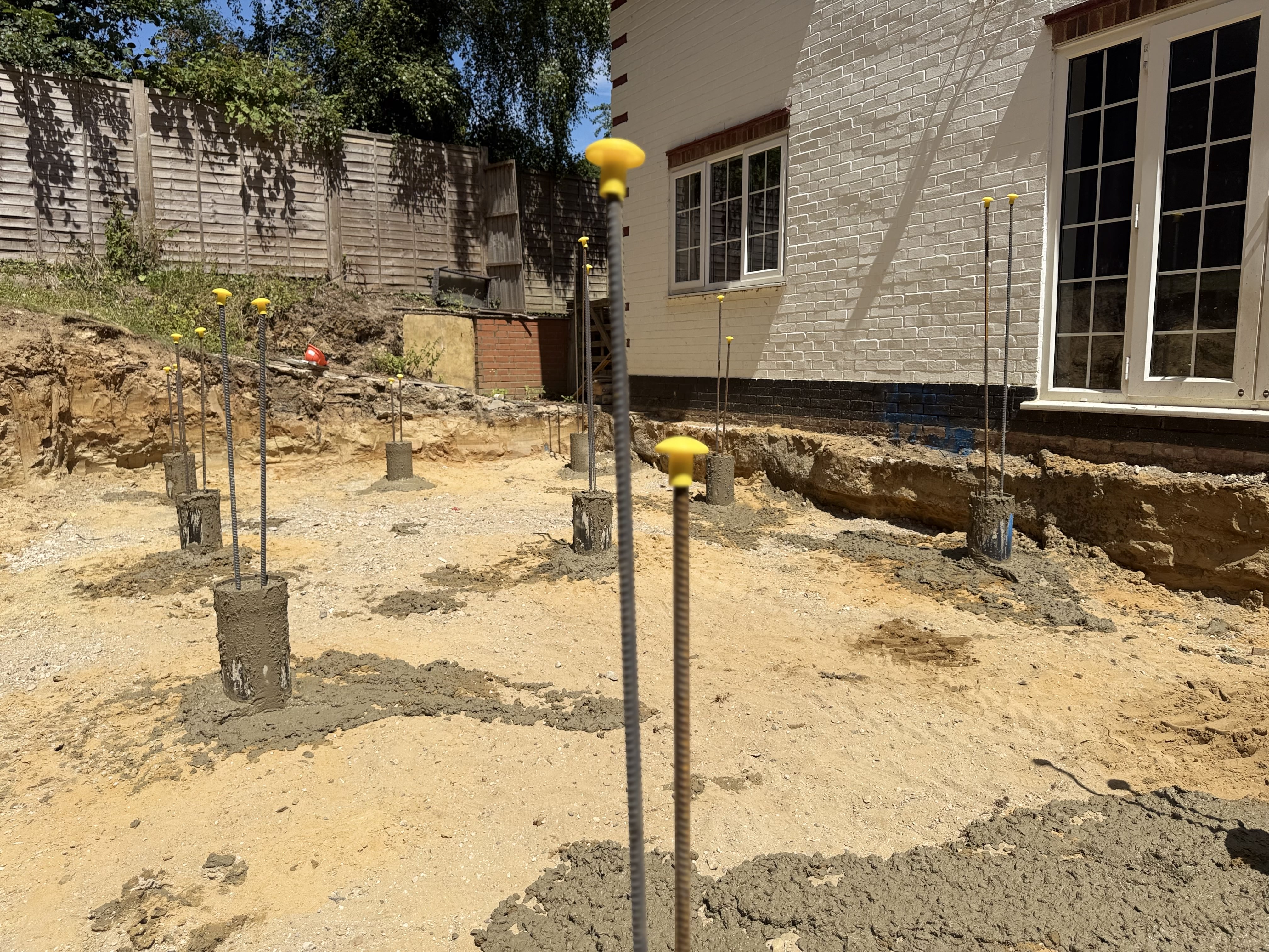 The piles were installed to an average design depth of approximately 6 metres, forming the primary structural support for the proposed build. A 250mm thick reinforced concrete raft was then constructed across 54m², distributing loads effectively across the pile network.